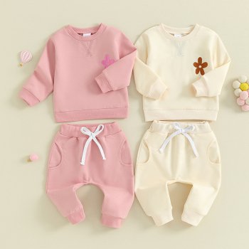 Baby Girls 2-Piece Floral Embroidered Sweatshirt and Pants Outfit Set
