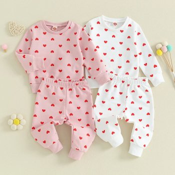 Baby Girl Heart Print 2-Piece Fall Outfit – Long Sleeve Sweatshirt & Sweatpants Set